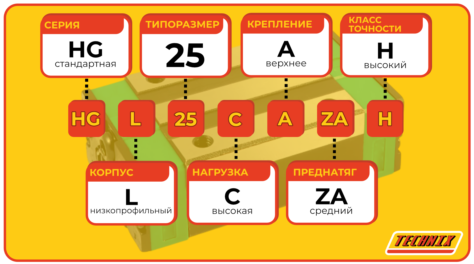 Линейная каретка HGL25CAZAH TECHNIX — низкопрофильный блок направляющей для промышленных систем