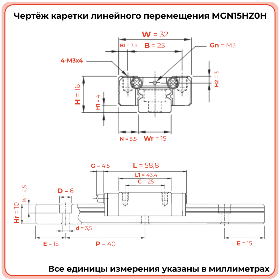 Каретка MGN15HZ0H TECHNIX — компактная линейная каретка для высокоточной малогабаритной техники