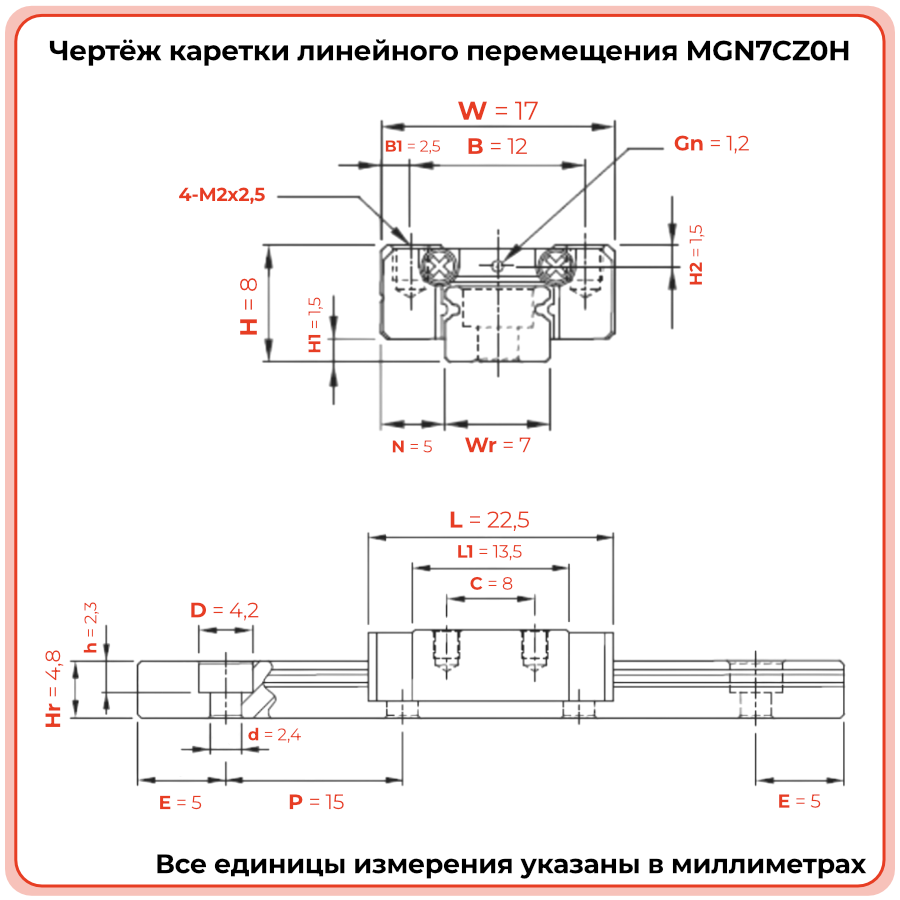 Каретка MGN7CZ0H TECHNIX — компактная линейная каретка для высокоточной малогабаритной техники