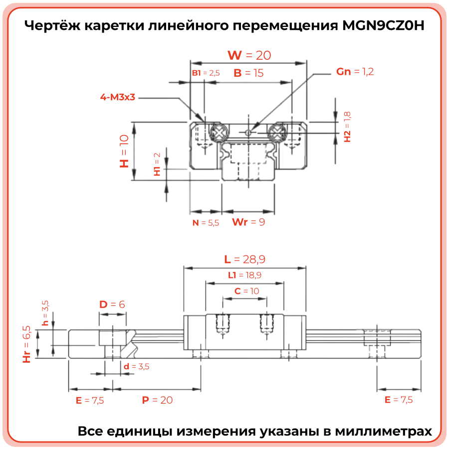 Каретка MGN9CZ0H TECHNIX — компактная линейная каретка для высокоточной малогабаритной техники