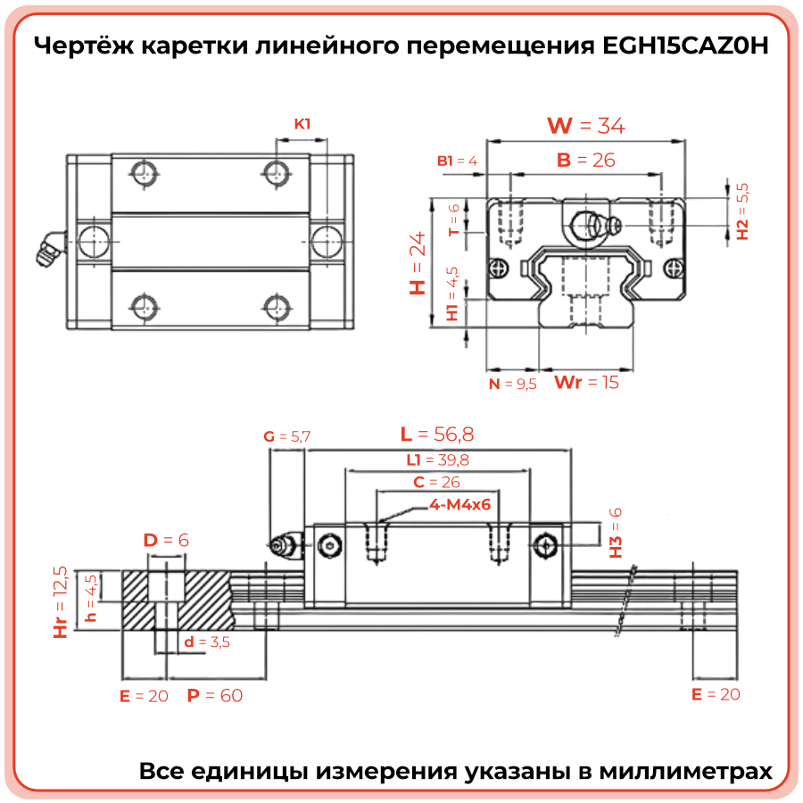 Если вам нужна низкопрофильная линейная каретка с точностью, долговечностью и низким уровнем износа, модель EGH15CAZ0H TECHNIX — отличное решение для высокоточных и автоматизированных систем.