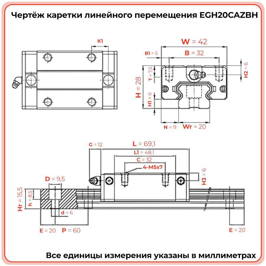 Каретка EGH20CAZBH (низкопрофильная) TECHNIX — это высокоточная низкопрофильная линейная каретка прямоугольного типа, предназначенная для применения в автоматизированных механизмах, промышленных станках с ЧПУ, системах позиционирования и прочих инженерных решениях, где необходима высокая точность при компактных габаритах. Конструкция каретки разработана с учётом требований к нагрузке, монтажной жёсткости и повторяемости перемещений. Подходит для направляющей шириной 20 мм.