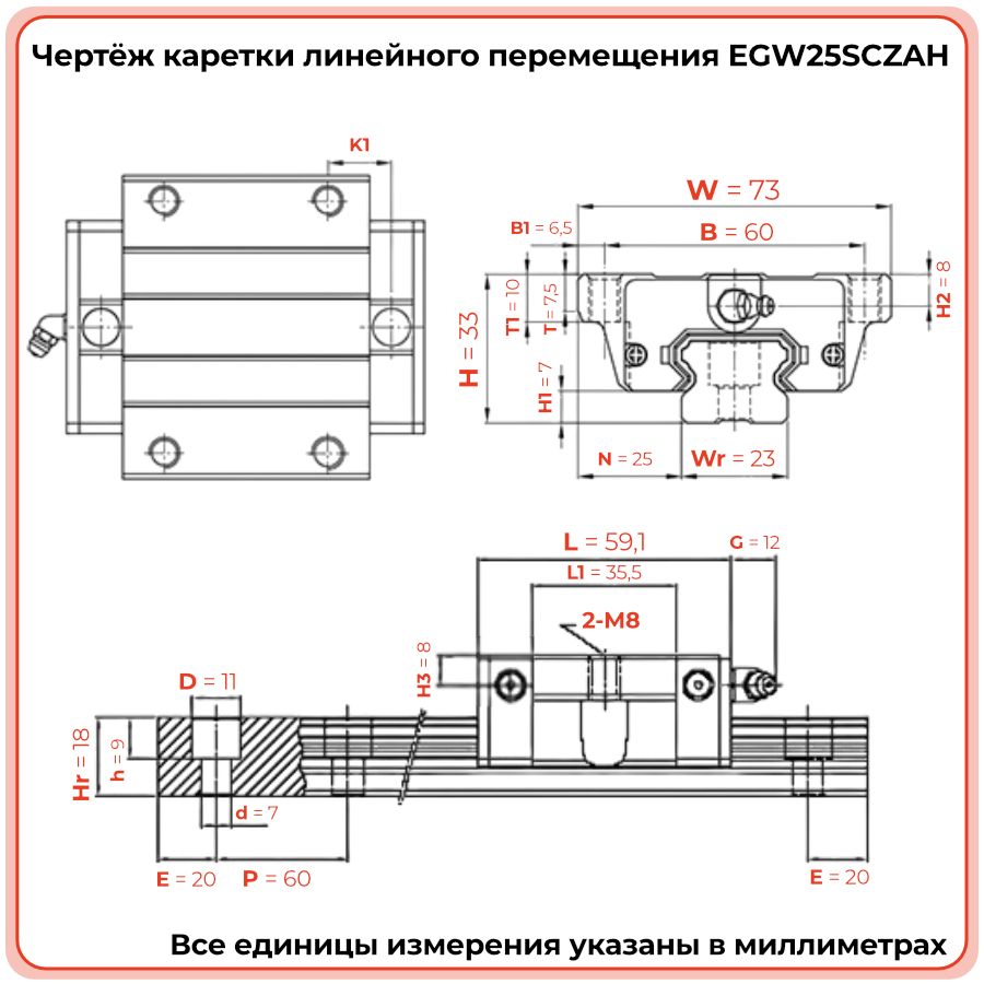 Каретка EGW25SCZAH (низкопрофильная) TECHNIX — это фланцевая линейная каретка, предназначенная для применения в системах линейного перемещения с повышенными требованиями к точности и нагрузке. Эта модель идеально подходит для использования в автоматизированных производственных линиях, ЧПУ-станках, роботизированных системах и других высокоточных приложениях, где важны высокая жёсткость и долговечность при компактных размерах.