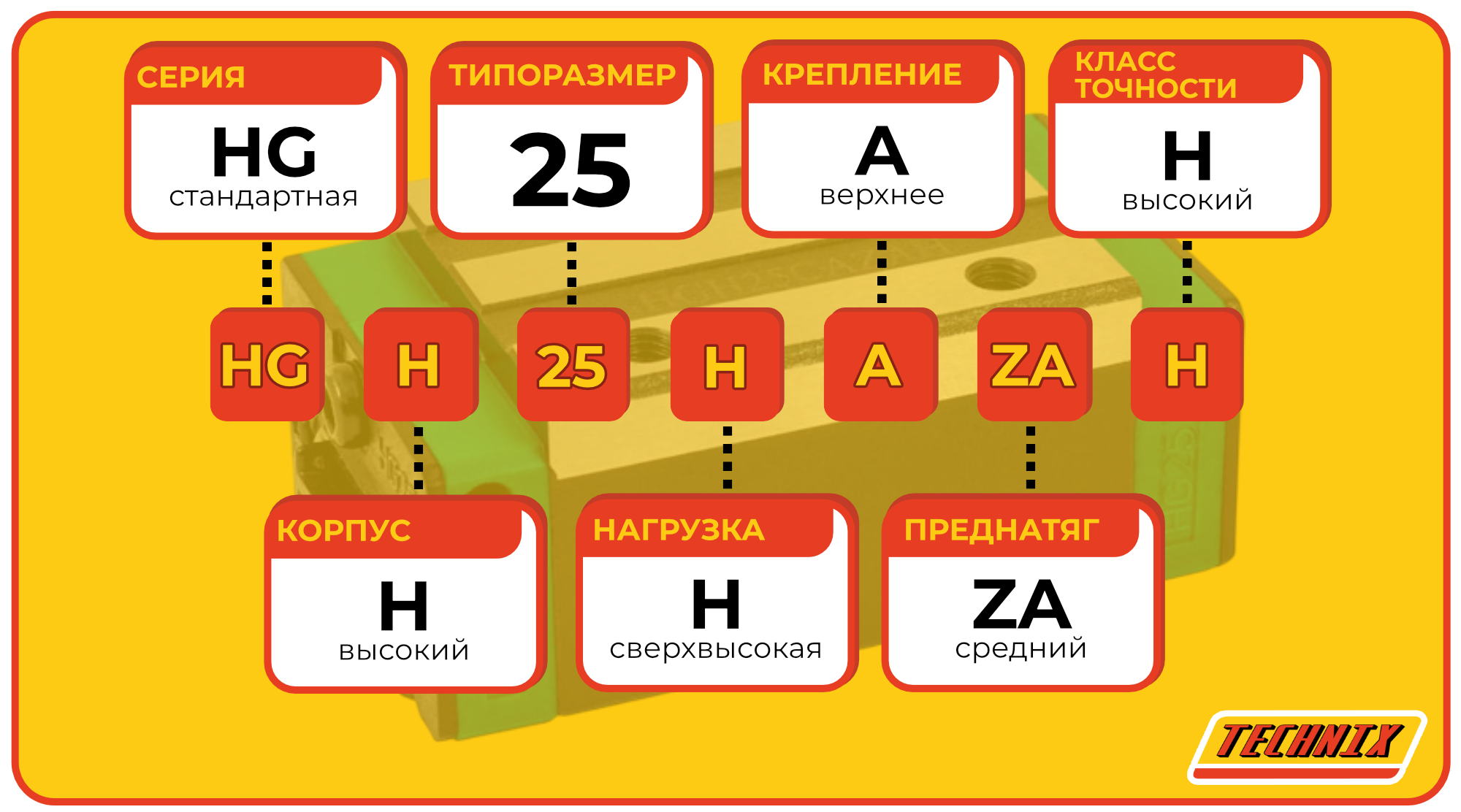 Линейная каретка HGH25HAZAH TECHNIX — высокий блок направляющей для промышленных систем