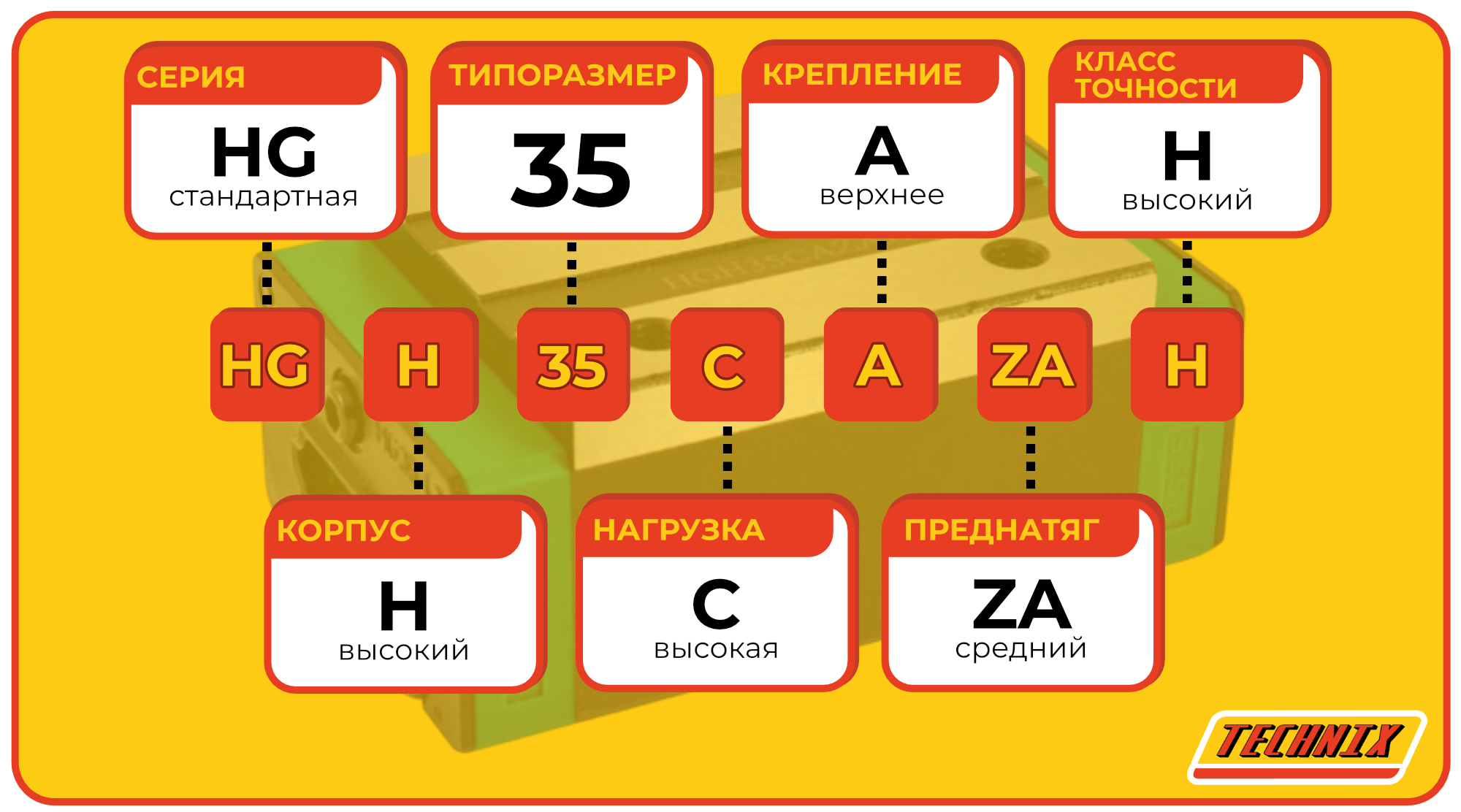 Линейная каретка HGH35CAZAH TECHNIX — высокий блок направляющей для промышленных систем