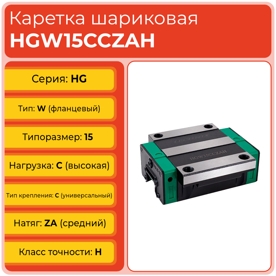 Линейная каретка HGW15CCZAH TECHNIX — широкий блок направляющей для промышленных систем