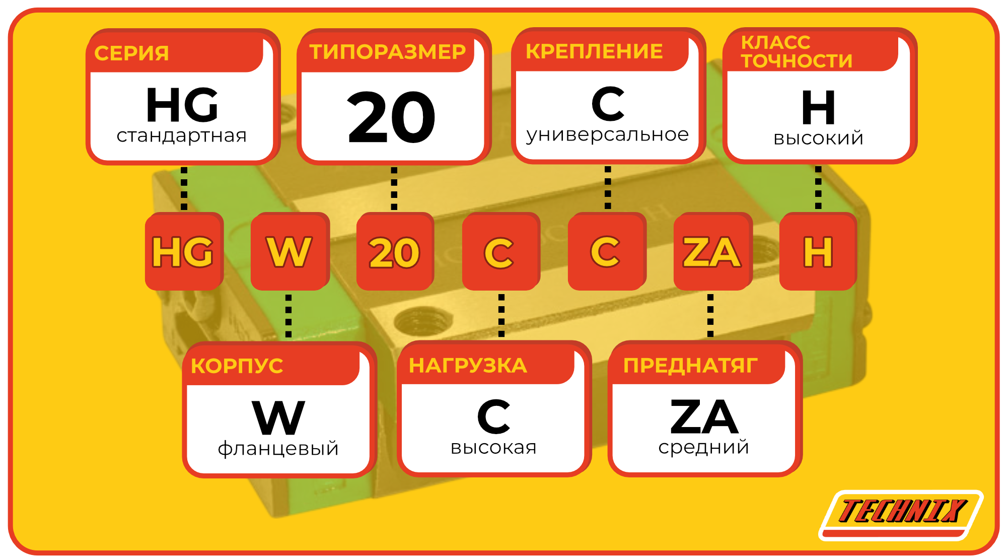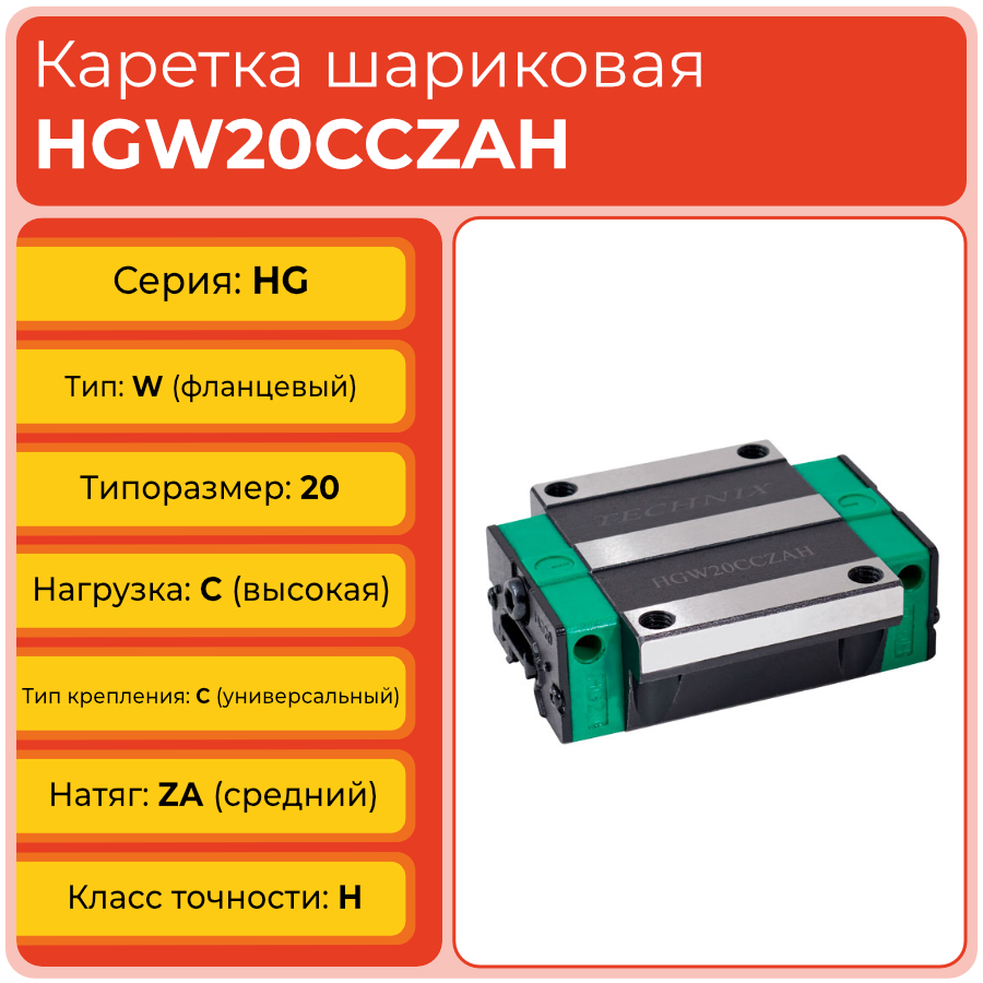 Линейная каретка HGW20CCZAH TECHNIX — широкий блок направляющей для промышленных систем
