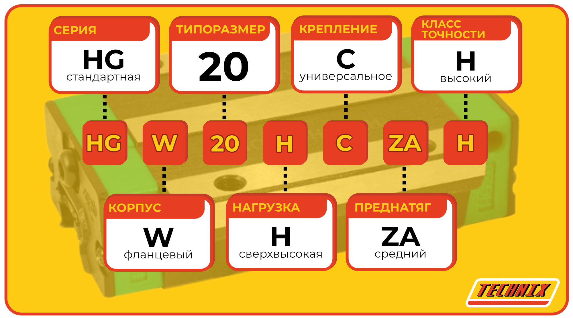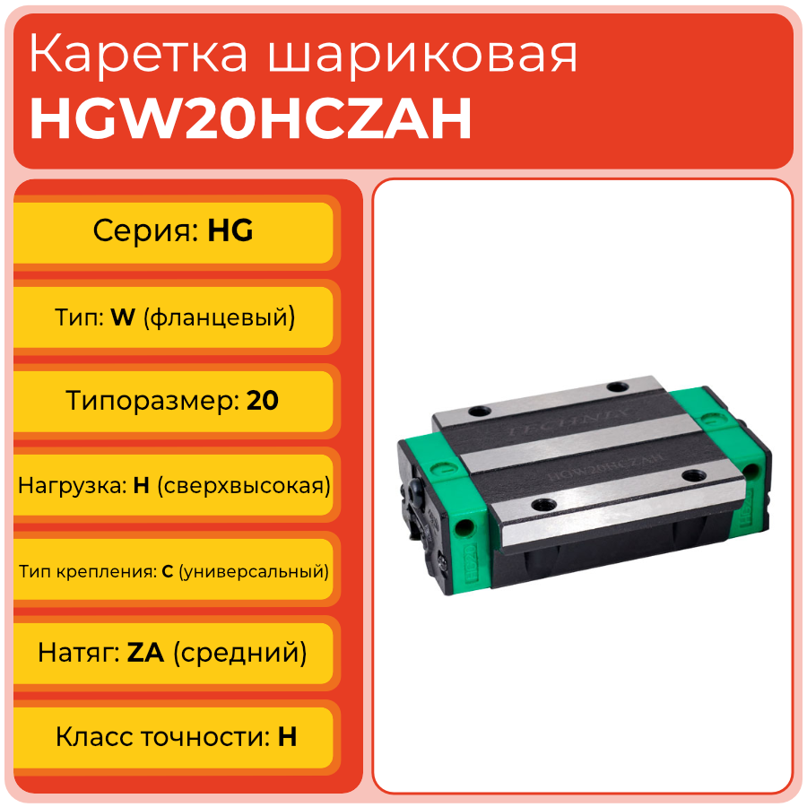 Линейная каретка HGW20HCZAH TECHNIX — широкий блок направляющей для промышленных систем