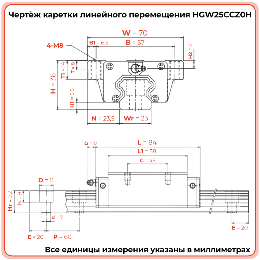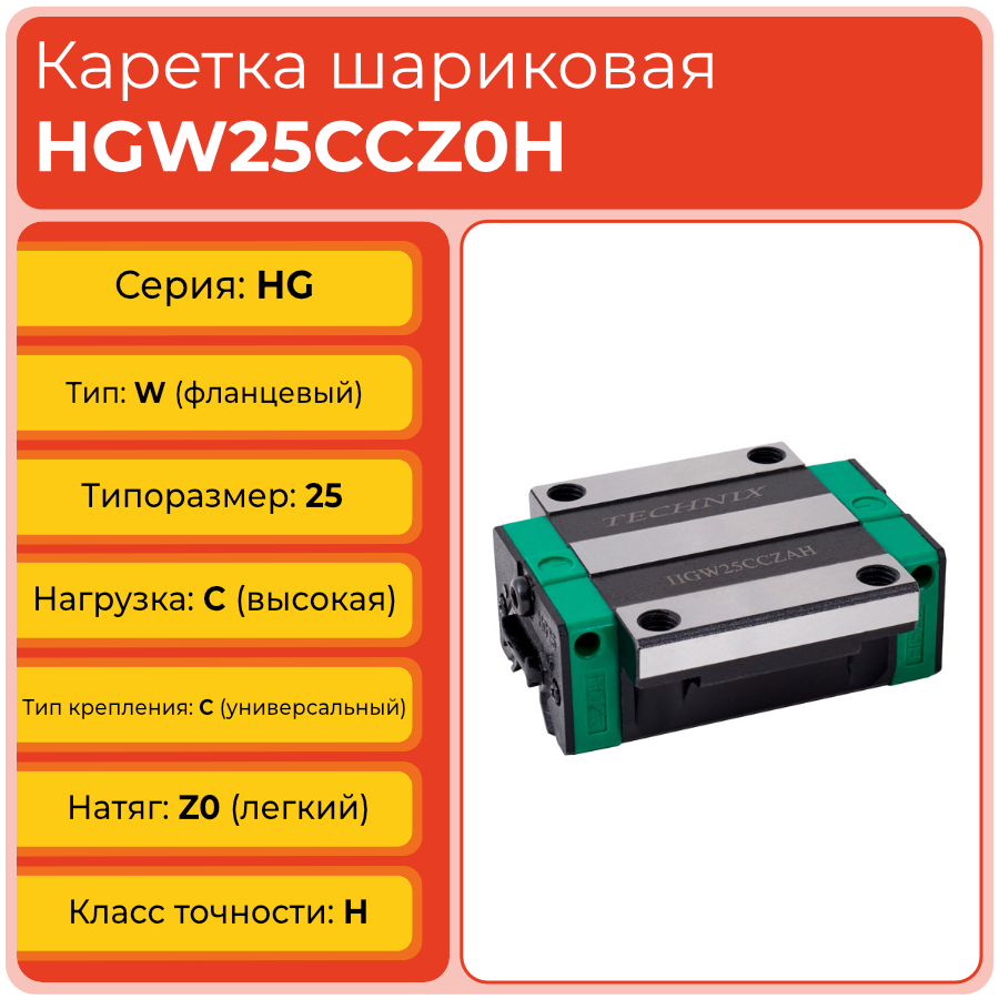 Линейная каретка HGW25CCZ0H TECHNIX — широкий блок направляющей для промышленных систем