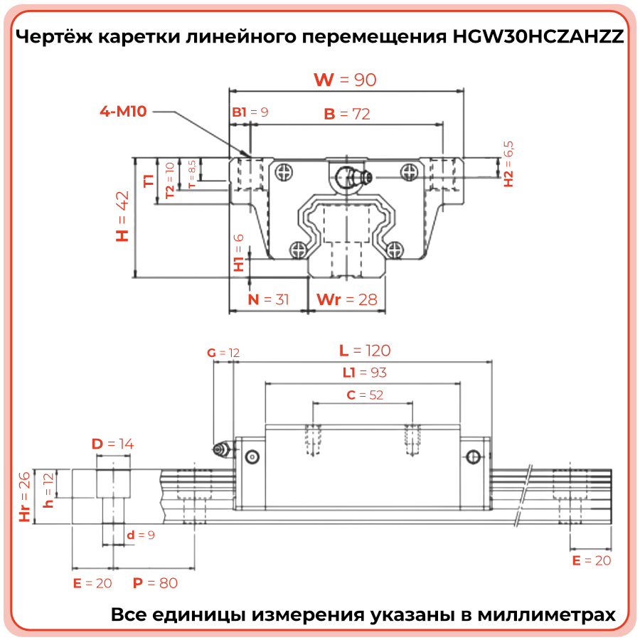 Линейная каретка HGW30CCZAHZZ TECHNIX — широкий блок направляющей для промышленных систем