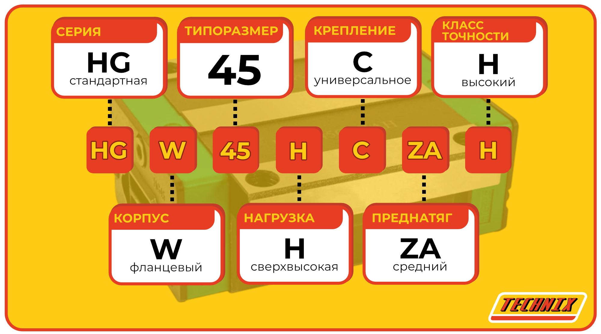 Линейная каретка HGW45HCZAH TECHNIX — широкий блок направляющей для промышленных систем