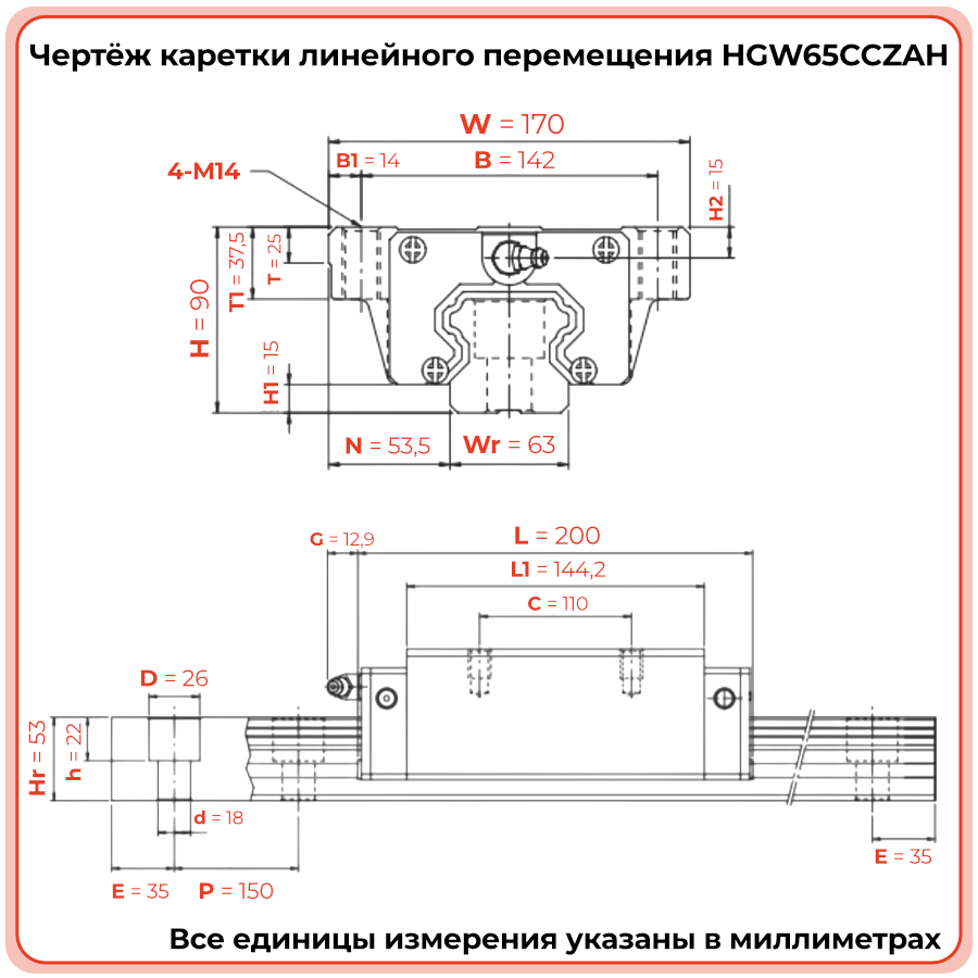 Линейная каретка HGW65CCZAH TECHNIX — широкий блок направляющей для промышленных систем