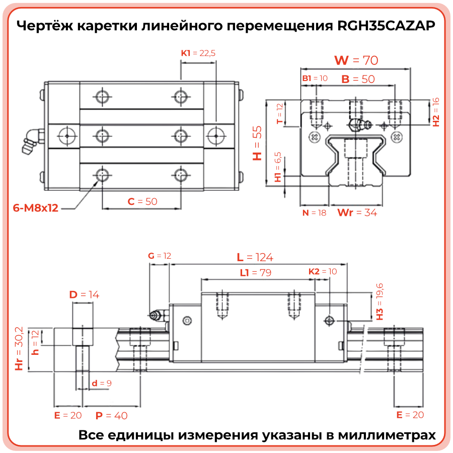 Каретка обеспечивает стабильную работу без люфтов, минимизируя трение. Используется в системах ЧПУ, сборочных и транспортных узлах. Установлены торцевые уплотнители и смазочные порты.