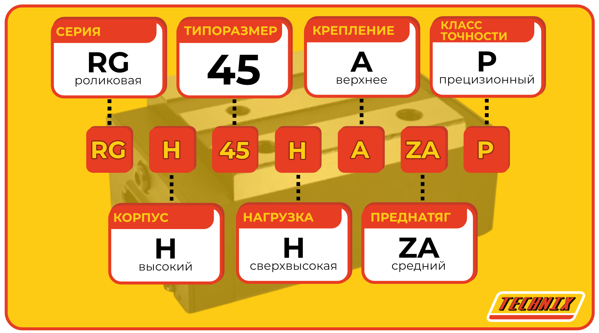 Каретка RGH45HAZAP TECHNIX — роликовая каретка с усиленной конструкцией для направляющих 45 мм