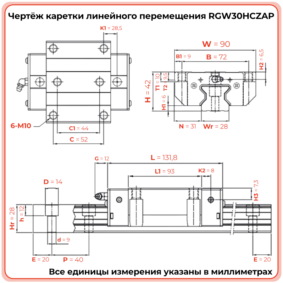 Каретка RGW30HCZAP TECHNIX — роликовая широкая каретка с высокой нагрузочной способностью