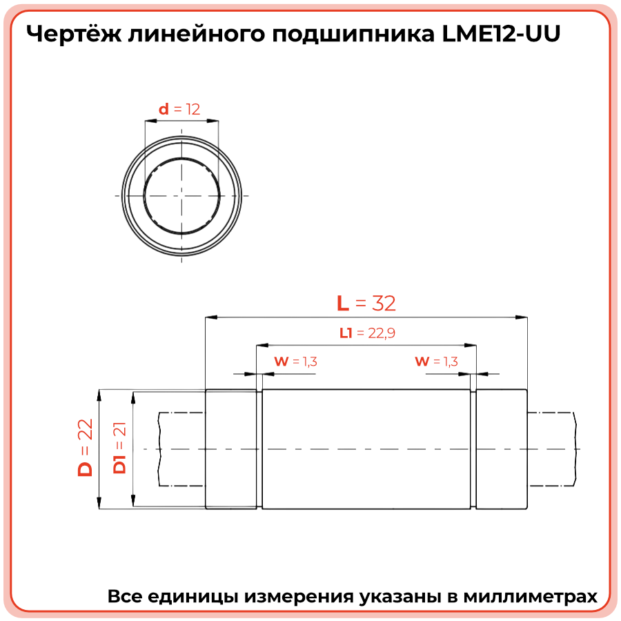 Линейный подшипник LME12-UU (KB1232PP) предназначен для линейного перемещения по прецизионному валу соответствующего диаметра. Закрытая конструкция повышает надежность и ресурс подшипника, а также позволяет использовать его на валах без опоры. Изделие имеет малый температурный нагрев. Благодаря высокой плавности перемещения способно выдерживать большие нагрузки.