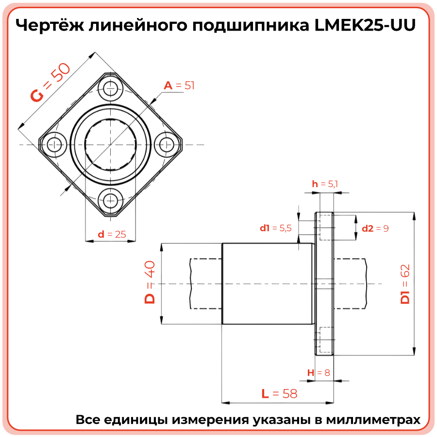 • диапазон размеров: от LMEK8UU до LMEK50UU;