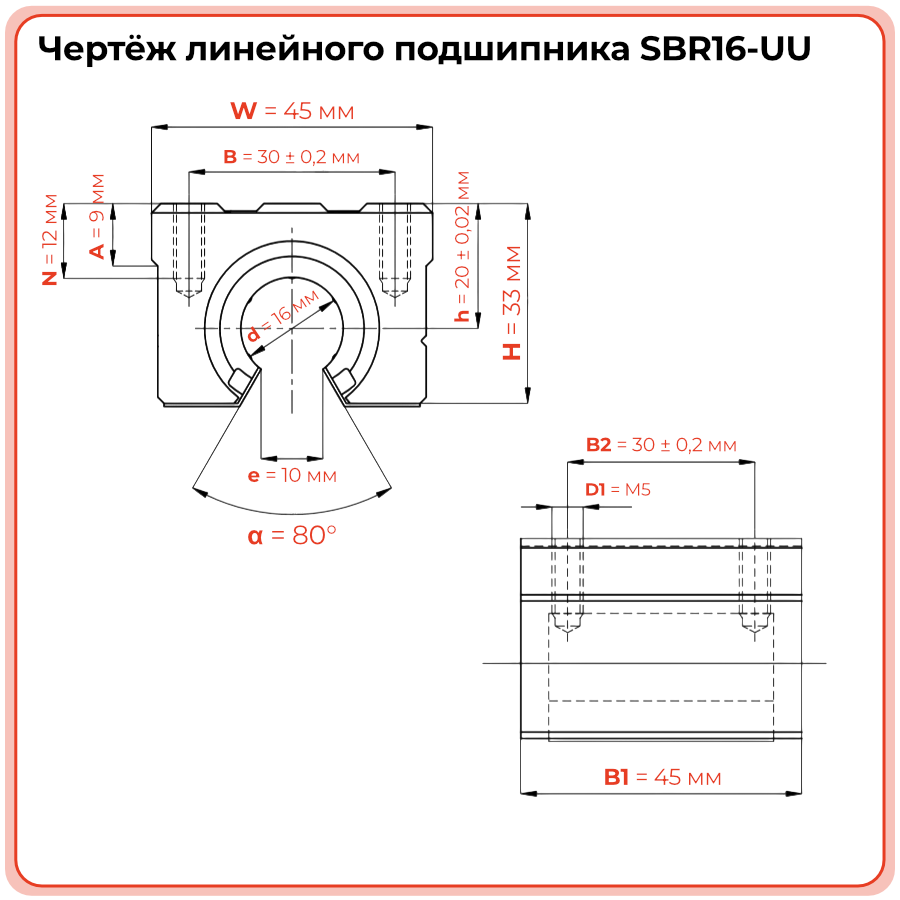 • диапазон размеров: от SBR12UU до SBR50UU;