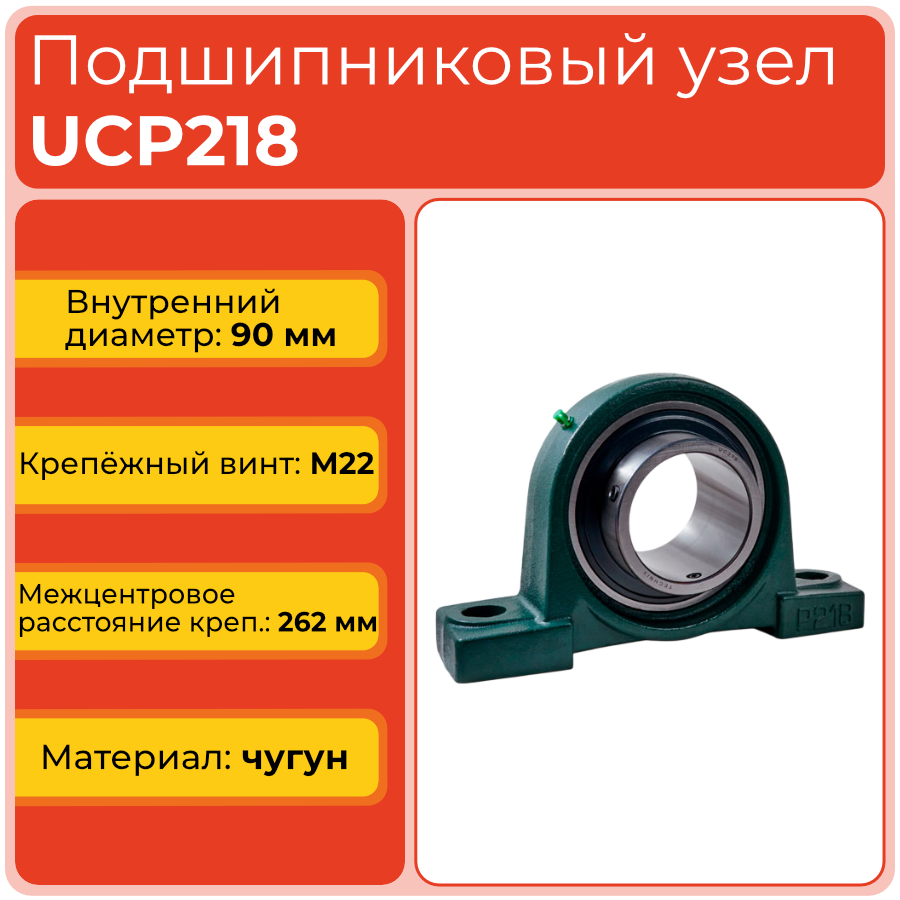 UCP218 применяют как опору валов в мощных и высоконагруженных агрегатах: крупногабаритных конвейеров, буровых установок, компрессорных станций высокого давления, гидравлических и шестеренчатых насосов, редукторов и приводных механизмов горнодобывающей, металлургической, перерабатывающей и тяжелой промышленности. Самоцентрирующаяся конструкция позволяет компенсировать значительные перекосы вала, облегчает техническое обслуживание и обеспечивает надежность при высоких циклических нагрузках и вибрации.