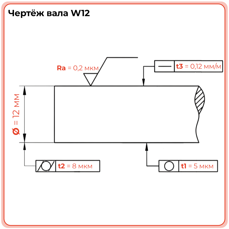 • Прямолинейность вала: до 5 мкм на метр длины.