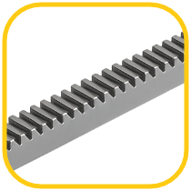 Зубчатая рейка представляет собой металлическую планку с нарезанными по длине зубьями, которые входят в зацепление с зубьями шестерни (зубчатого колеса). При вращении шестерни создаётся поступательное движение по линии зубьев, что позволяет управлять перемещением каретки, рабочего инструмента или других компонентов. Благодаря высокой точности исполнения и надёжному зацеплению зубья обеспечивают жёсткость, устойчивость к нагрузкам и точность позиционирования. Такая передача не требует сложного обслуживания и может работать в тяжёлых условиях эксплуатации, включая пыль, вибрации, повышенные температуры.